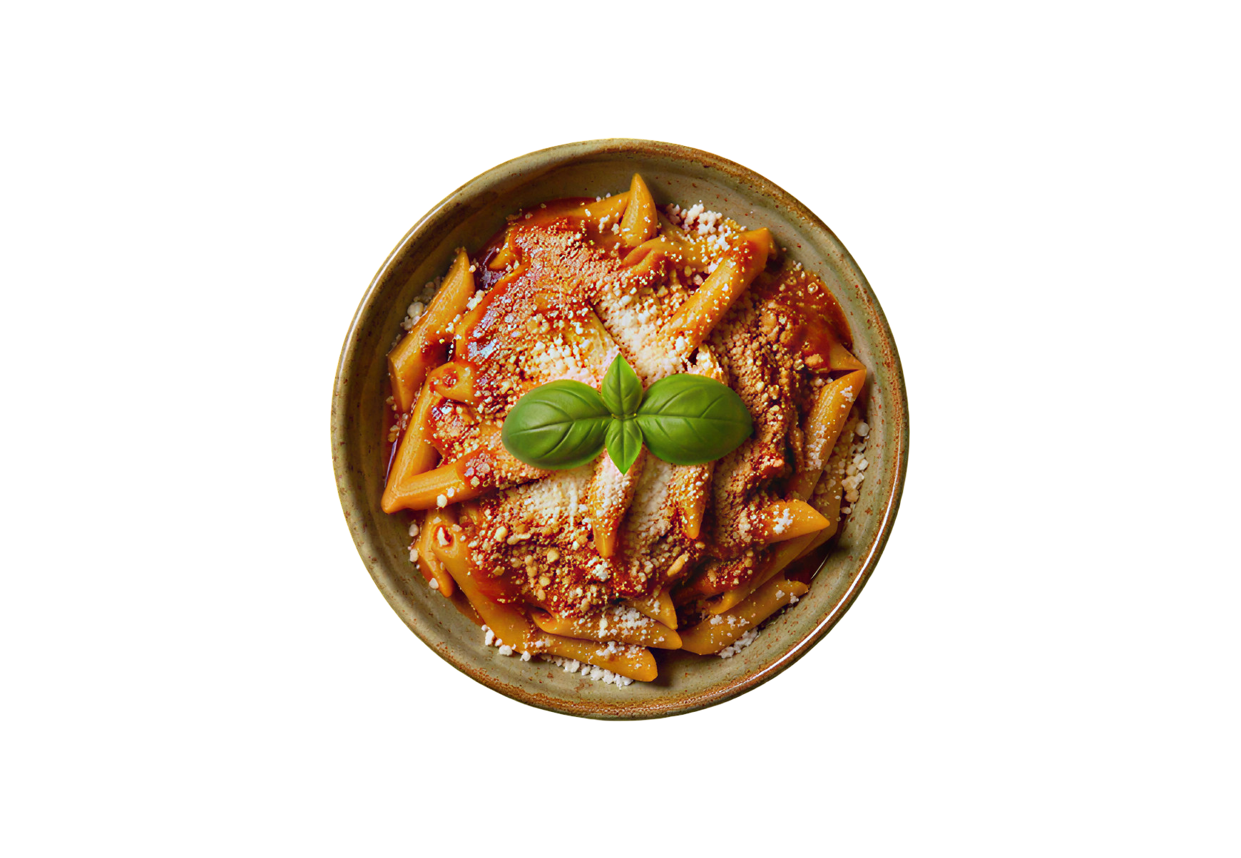Pasta in unserer aromatischen Tomatensauce aus sonnengereiften Tomaten, frischem Basilikum und Olivenöl.